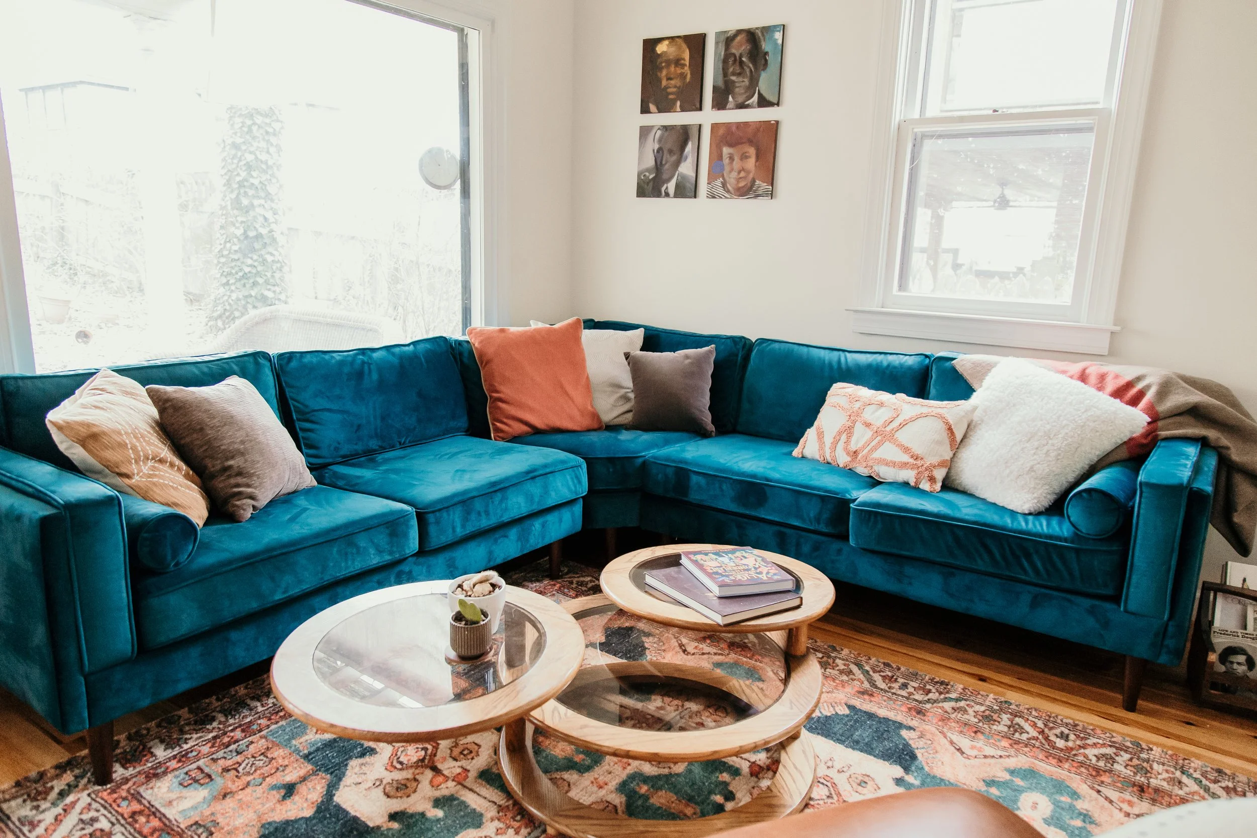 A vibrant living room infused with the soul of the city, located in the Five Points neighborhood of Nashville, TN.